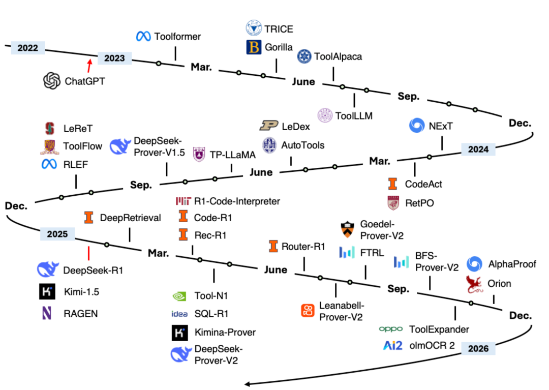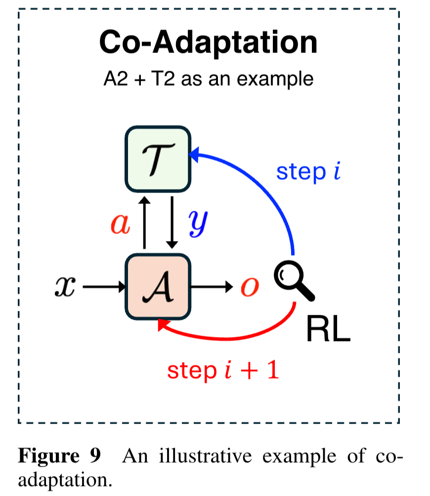 **协同适应(Co-Adaptation)**是最具挑战性的课题。目前几乎所有方法都是“冻一个、调一个”,但未来理想的系统应该让Agent和工具在同一个学习循环中相互优化。这带来了复杂的信用分配问题:任务失败了,到底该怪Agent还是工具?