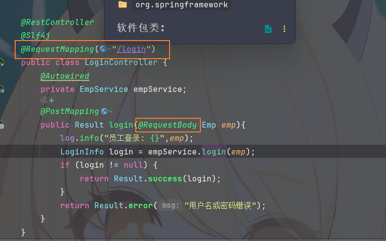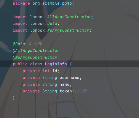 观察到响应参数没有类包含token参数,而emp中属性太多,直接新建一个LoginInfo