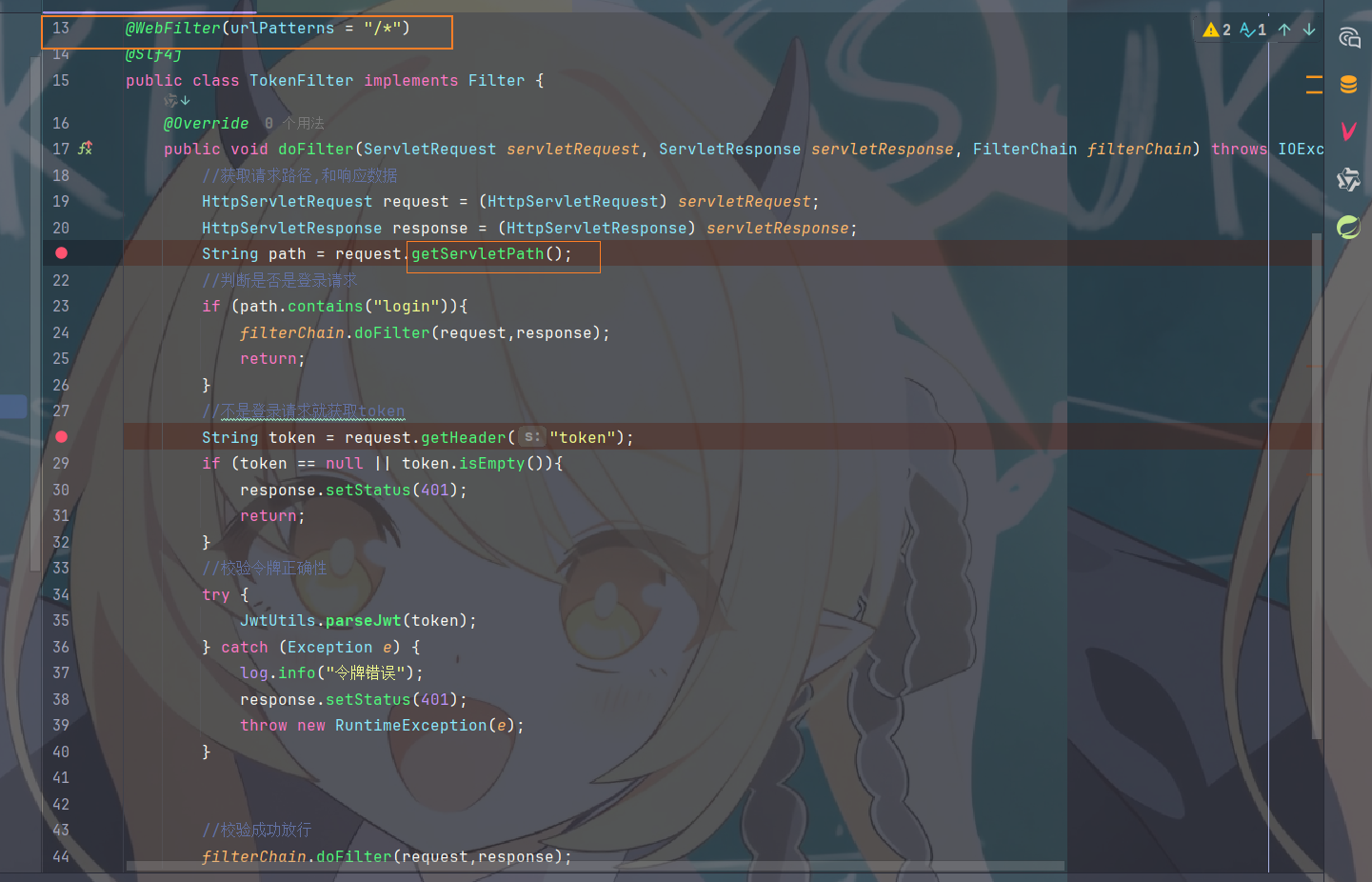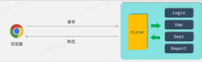 JavaWeb三大组件(Servlet、Filter、Listener)之一,使用过滤器后,客户端的所有请求都要经过过滤器,过滤器如果放行才能访问后续的接口