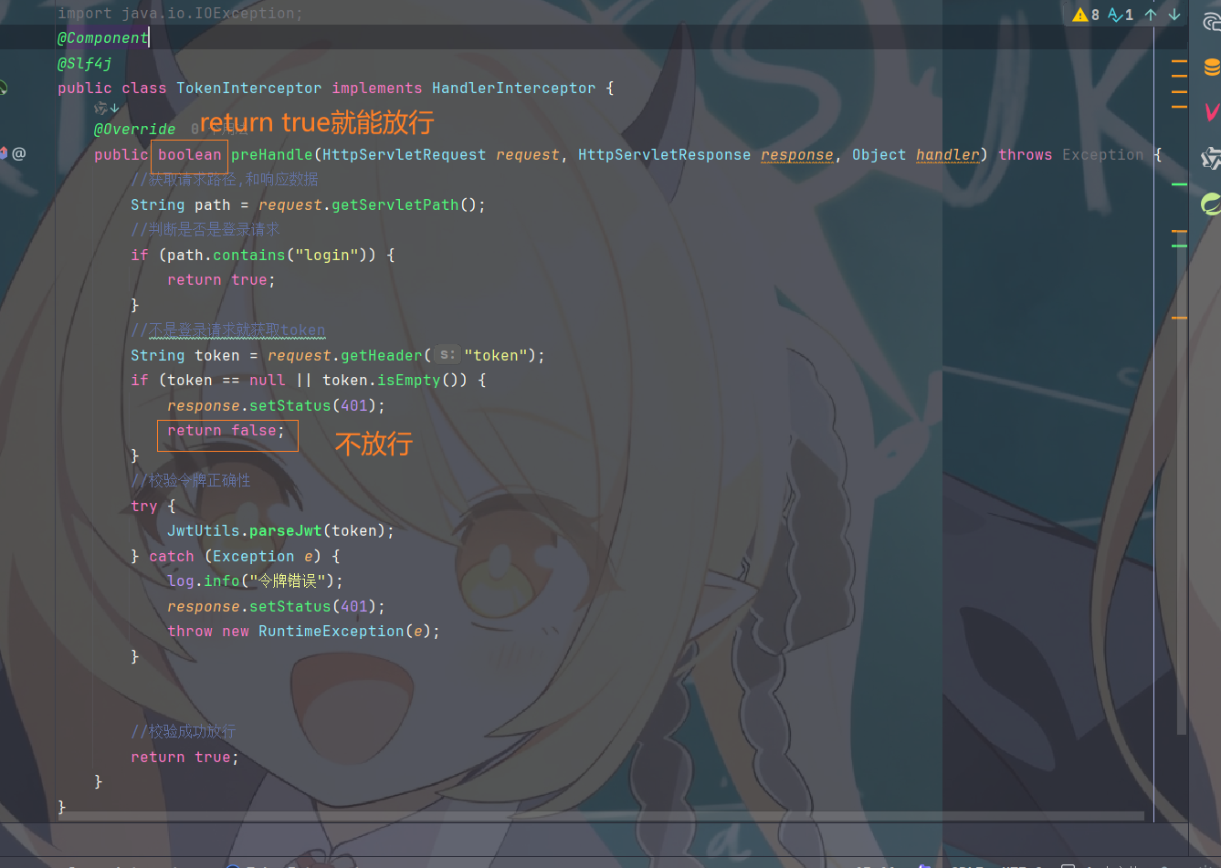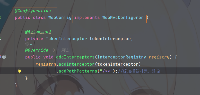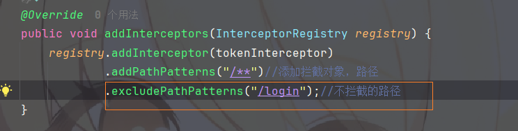 在注册器中我们可以调用一个方法来管理不拦截的路径,能代替我们签名的业务中判断是否为login接口