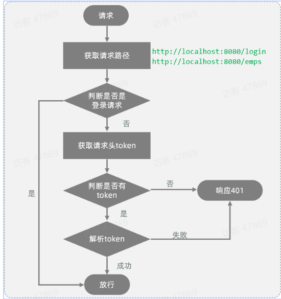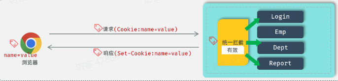 在用户登录时可以生成一个令牌,然后把令牌传给前端,让前端存在cookie中,也可以存储在其他的存储空间(比如:localStorage)当中,之后每一次请求都携带cookie进行访问
