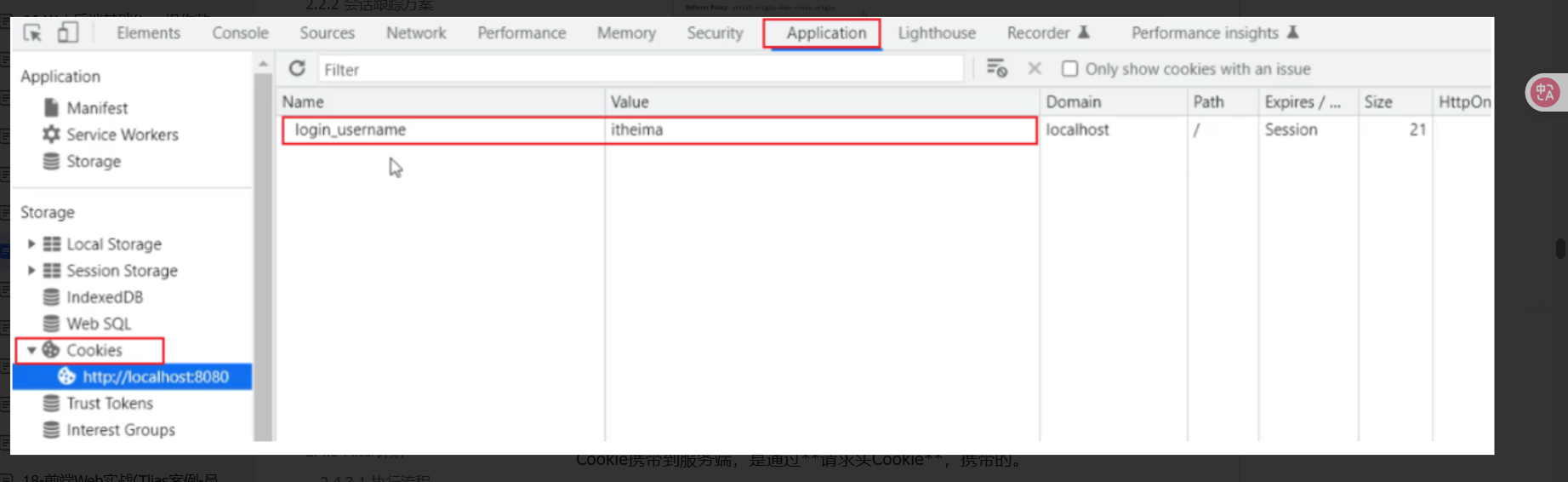 在服务端获取到 cookie 的值。判断一下这个 cookie 的值是否存在,存在就是登录过,不存在就没有,这样我们就可以基于 cookie 在同一次会话的不同请求之间来共享数据