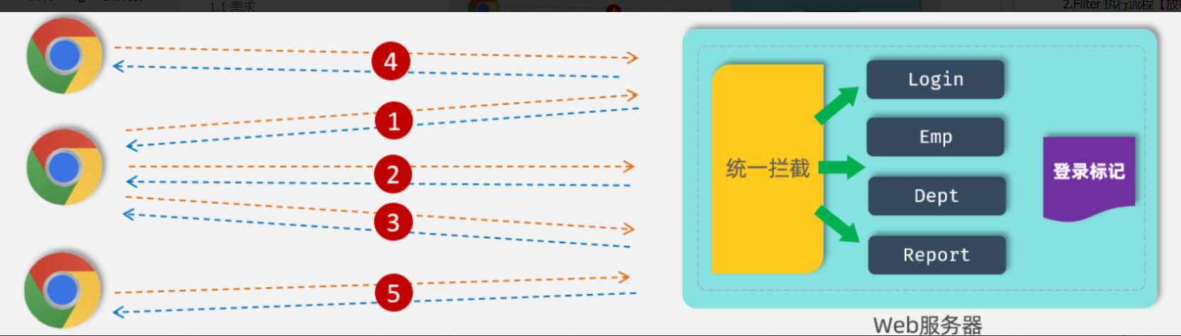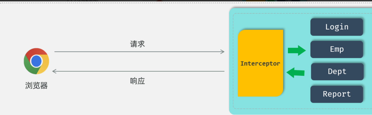 拦截范围不同:过滤器Filter会拦截所有的资源,而Interceptor只会拦截Spring环境中的资源。