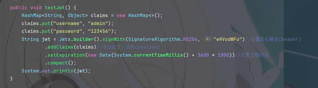 addClaims()参数需要一个Map,作用是添加自定义信息也就是设置payload