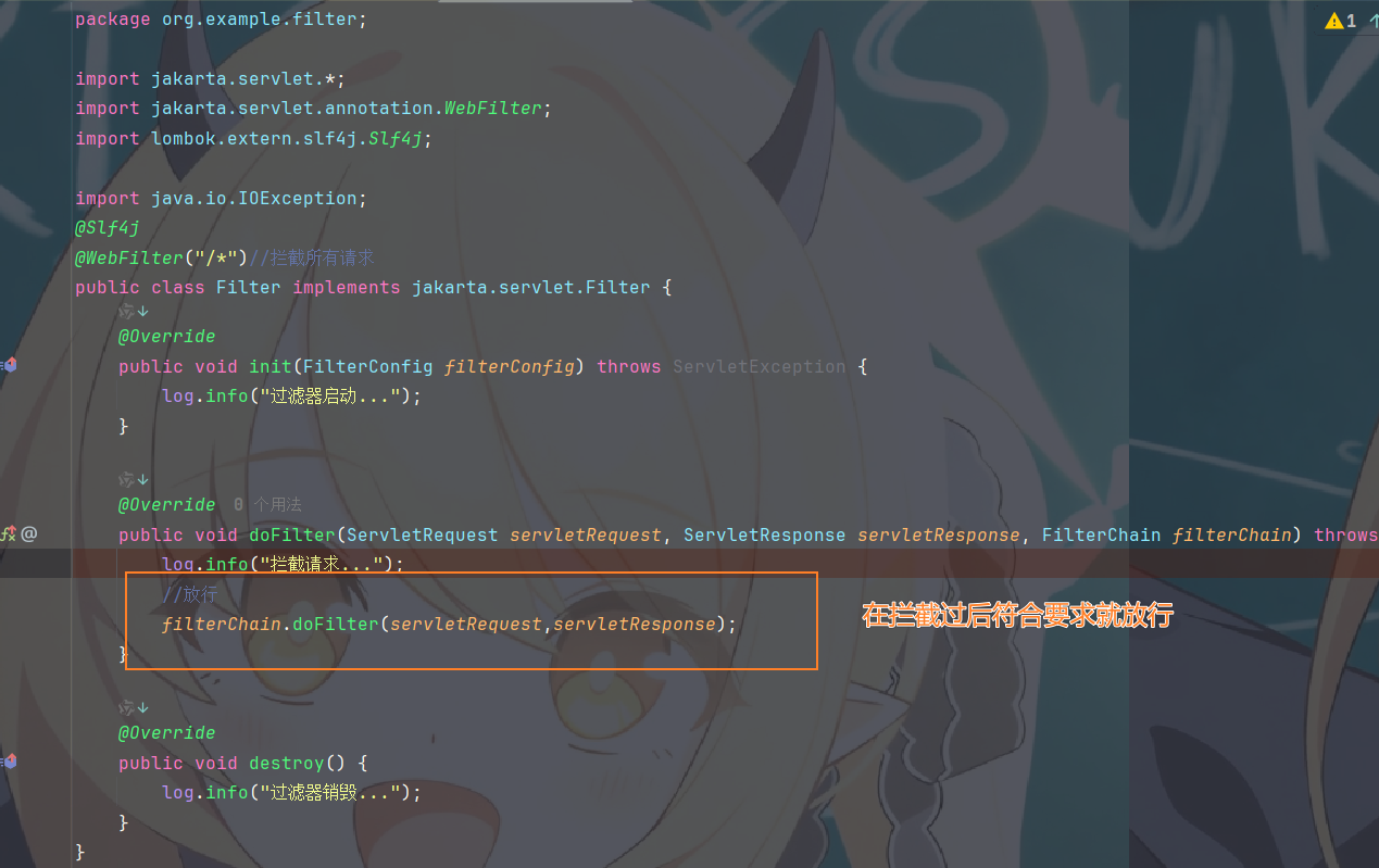@WebFilter注解表示拦截请求(/*)拦截所有请求
