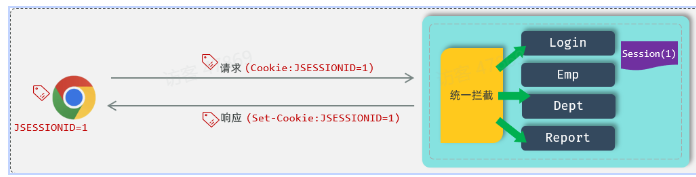 会话指的就是浏览器与服务器之间的一次连接,称为一次会话,在一次会话当中,是可以包含多次请求和响应的。