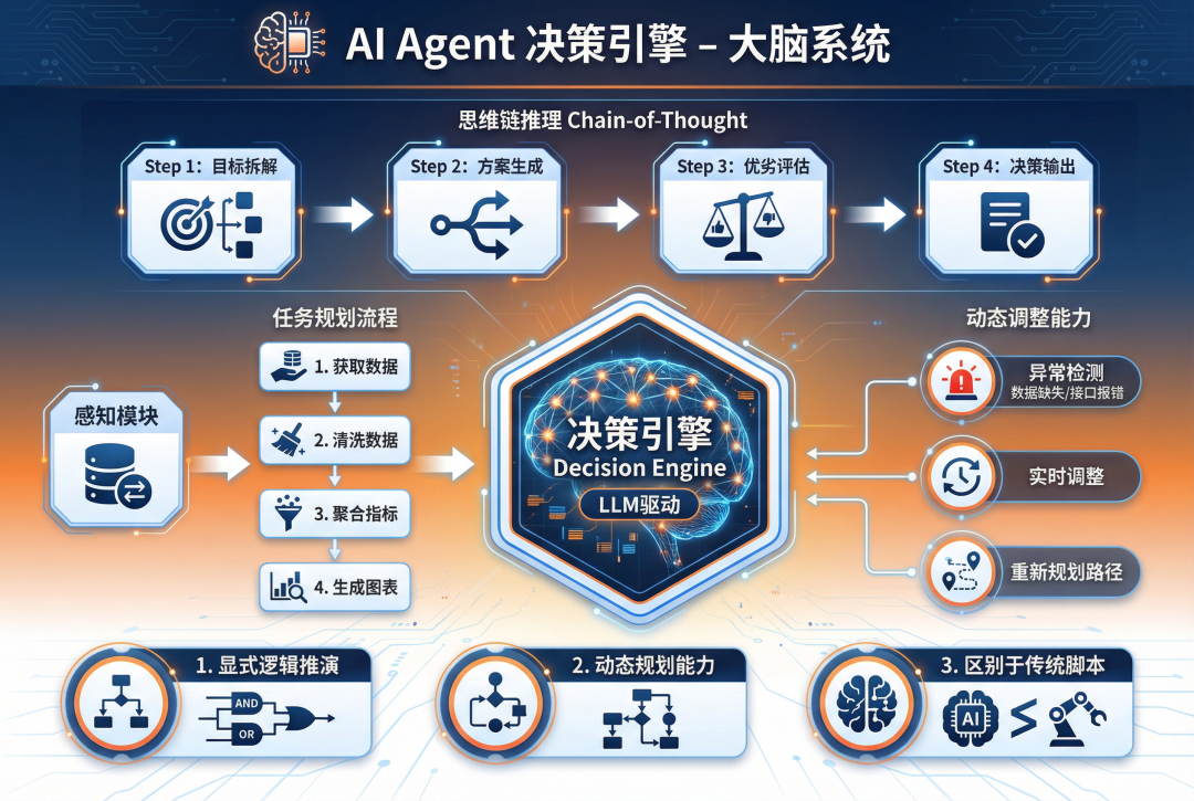 如果在执行过程中遇到了意料之外的情况,比如数据缺失或接口报错,决策引擎会实时感知并调整计划,重新规划路径。这种具备动态调整能力的决策机制,才是智能体区别于传统自动化脚本的本质特征。