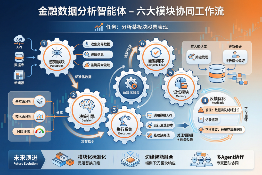 为了更直观地理解这六大模块是如何像齿轮一样咬合的,我们可以看一个金融数据分析智能体的真实工作流: