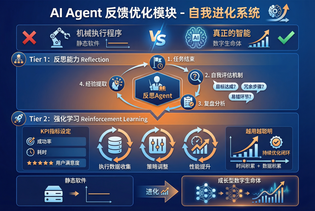 反馈优化模块就是 AI Agent 实现自我进化的关键一环。
