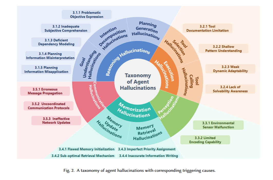 - 触发原因分析:论文深入探讨了十八种导致代理幻觉的触发原因,包括目标理解不准确、依赖关系建模不足、工具文档限制、浅层模式理解不足、动态适应性弱、缺乏可解性意识等。