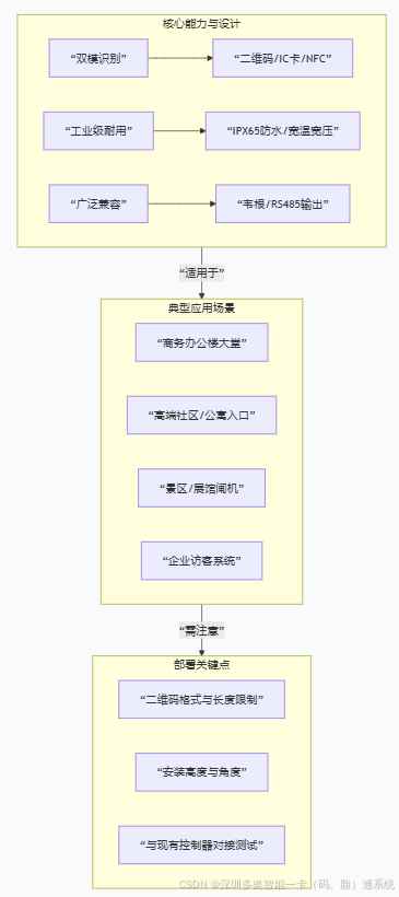 A1[“双模识别”] --> A2[“二维码/IC卡/NFC”]