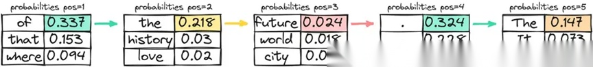 简单来说,贪婪采样的模型在每一步都选择概率最高的词语,并基于选择的词语继续生成文本。