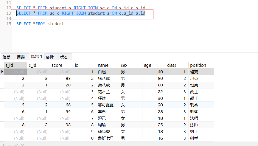 表顺序影响:右连接的“保留逻辑”依赖表位置(保留右侧表),互换表顺序后,保留的表发生变化(如