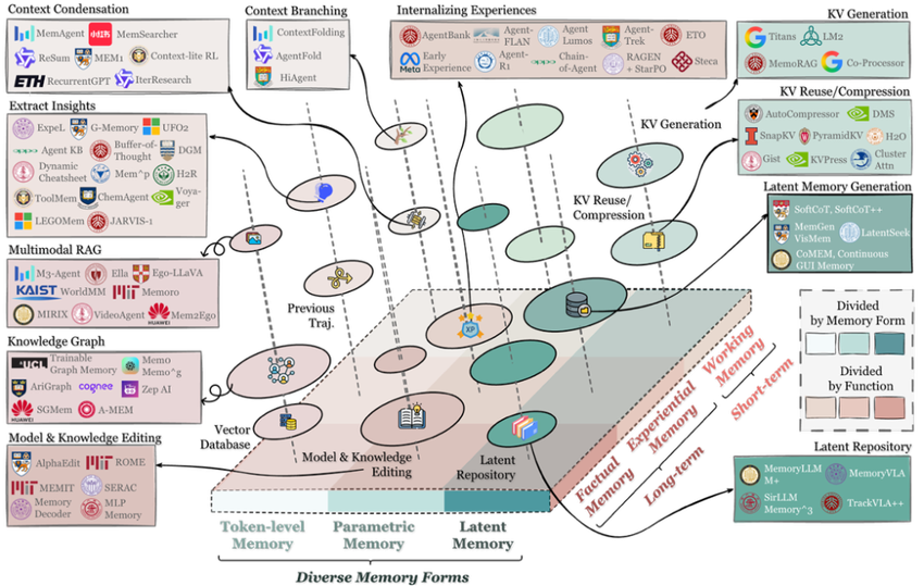 为了系统性地理解智能体记忆,学术界提出的**Forms–Functions–Dynamics(三角框架)**提供了一个强大的统一视角。它试图分别回答三类核心问题: