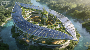 现代森系生态办公楼建筑摄影,建筑主体为 3-5 层通透式设计,外立面覆盖大面积垂直绿化墙,种植常春藤、绿萝等藤蔓植物,搭配浅灰色钢结构与玻璃幕墙,形成 “建筑融入自然” 的视觉效果。屋顶设空中花园,种植草本植物与小型乔木,配备休闲座椅与光伏板。建筑造型采用不规则几何拼接,局部挑出的观景平台与连廊增加空间层次感。入口处设生态水景,水流顺着岩石纹理流淌,门前种植高大的朴树与乌桕,营造出森林氧吧般的办公环境。整体建筑强调环保与可持续性,风格现代简约又充满自然气息,适合创意类企业办公 |
