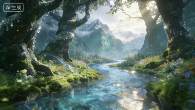 示例:梦幻般的森林,晨光穿透轻盈的雾气,照亮了古老而神秘的树木。树干上覆盖着晶莹的露珠,反射着柔和的光。地面上铺满了五彩斑斓的野花,仿佛是大自然最绚烂的织锦。远处,轻柔的溪流在静谧中潺潺流淌,水面上漂浮着点点荧光,宛如星辰落入凡间。空气中弥漫着淡淡的花香与泥土的清香,营造出一个远离尘嚣、宁静致远的梦幻之境。 |