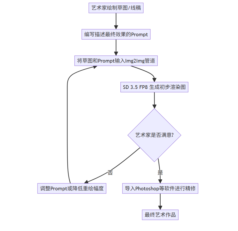 A[艺术家绘制草图/线稿] --> B[编写描述最终效果的Prompt];