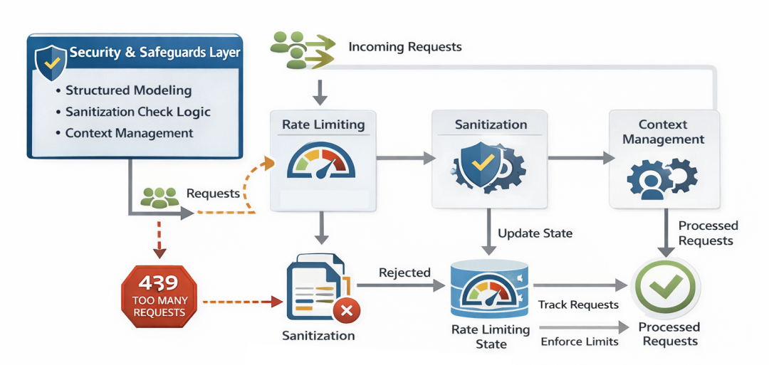 生产环境下不能信任用户输入,也不能允许无限访问。类似 together.ai 等 API 提供方会对每分钟请求数限流以防滥用,保护基础设施并控制成本。