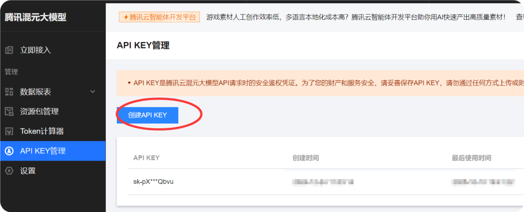 申请地址:https://console.cloud.tencent.com/hunyuan/api-key