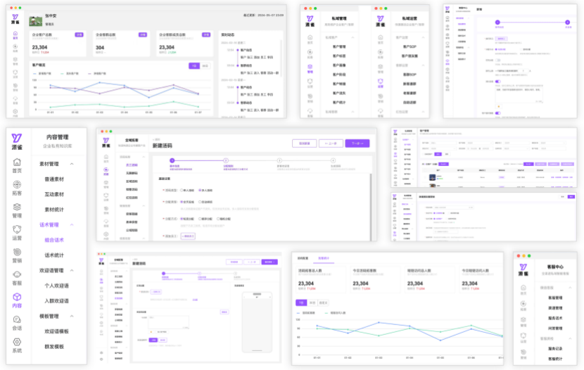 源雀SCRM基于 “拓客->管理->运营->营销->服务->分析” 全链路,完成一站式私域数智化营销,具体如下: