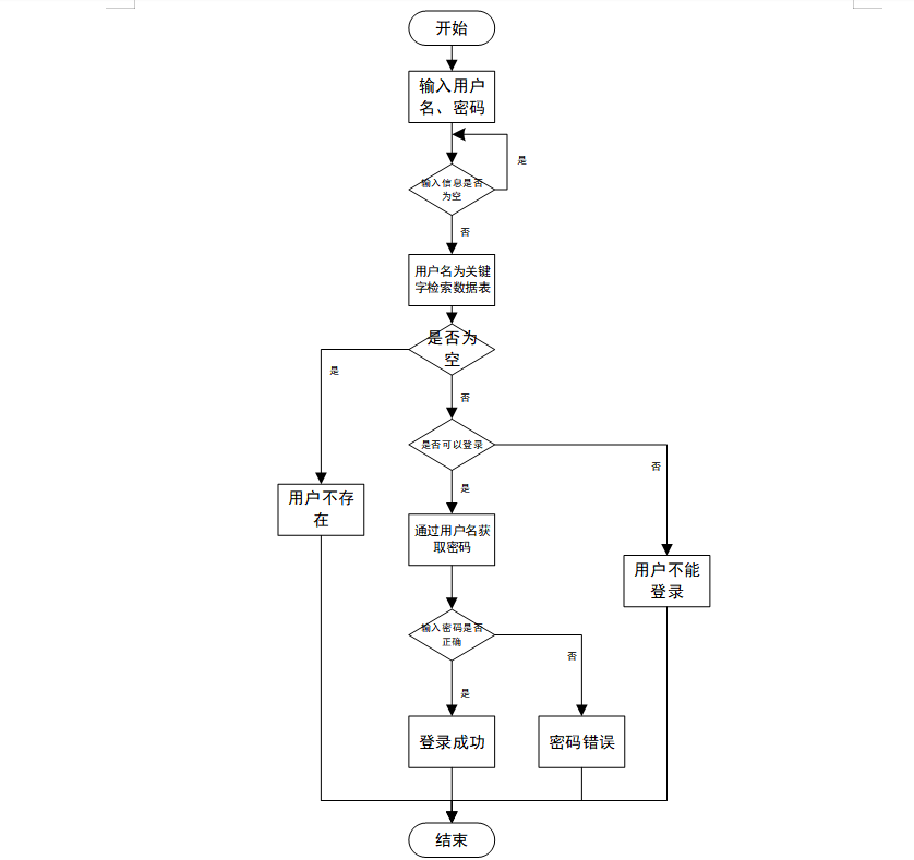 用户登录系统时需要输入正确的用户名和密码,数据库在进行匹配核实后匹配结果正确才能进入系统,若错误则提示用户名或密码错误,即无法登录。操作流程如图3-6所示。