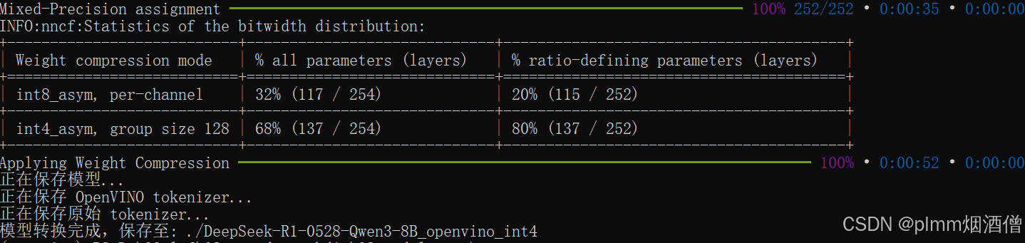 """将safetensors模型转换为OpenVINO格式,并应用INT4量化 + 转换tokenizer为OpenVINO IR"""