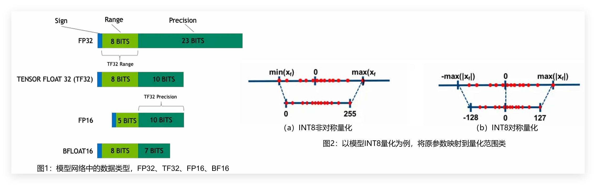 - INT8对称量化:映射范围[-128,127],以0为中心,按参数绝对值最大值确定范围,适配权重等分布对称场景,计算更简洁。