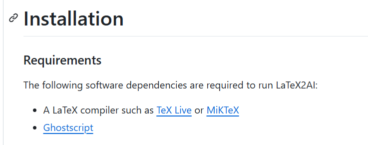 下拉页面到 Installation 部分,可以看到LaTeX2AI需要安装