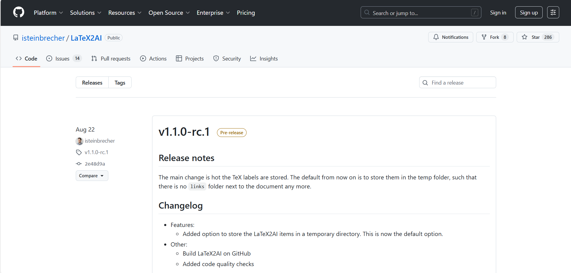 接下来安装LaTeX2AI时,不要直接安装zip文件,打开Github网页的 GitHub release page