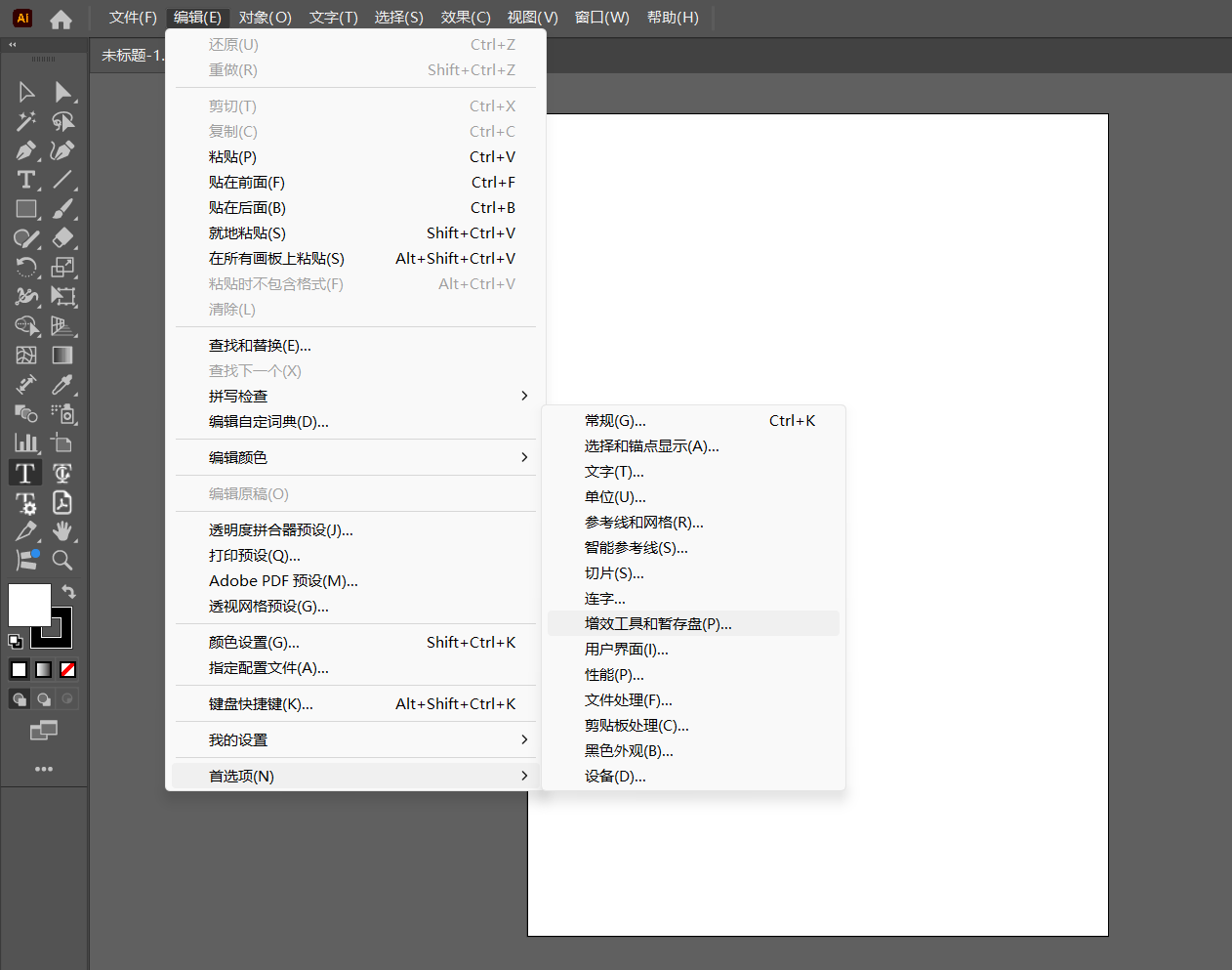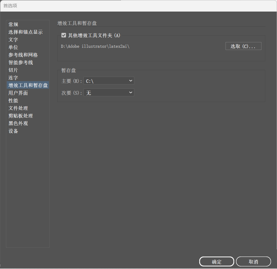 接下来配置adobe illustrator。打开adobe illustrator,选择 编辑->首选项->增效工具和暂存盘