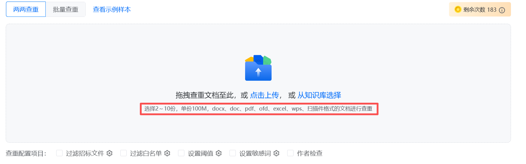 灵活的自定义查重配置:让工具适配各类复杂场景。用户可以过滤招标文件原文,避免合规响应内容误判为重复;可自定义白名单,将行业规范、法定条款等无需查重的内容纳入豁免范围。