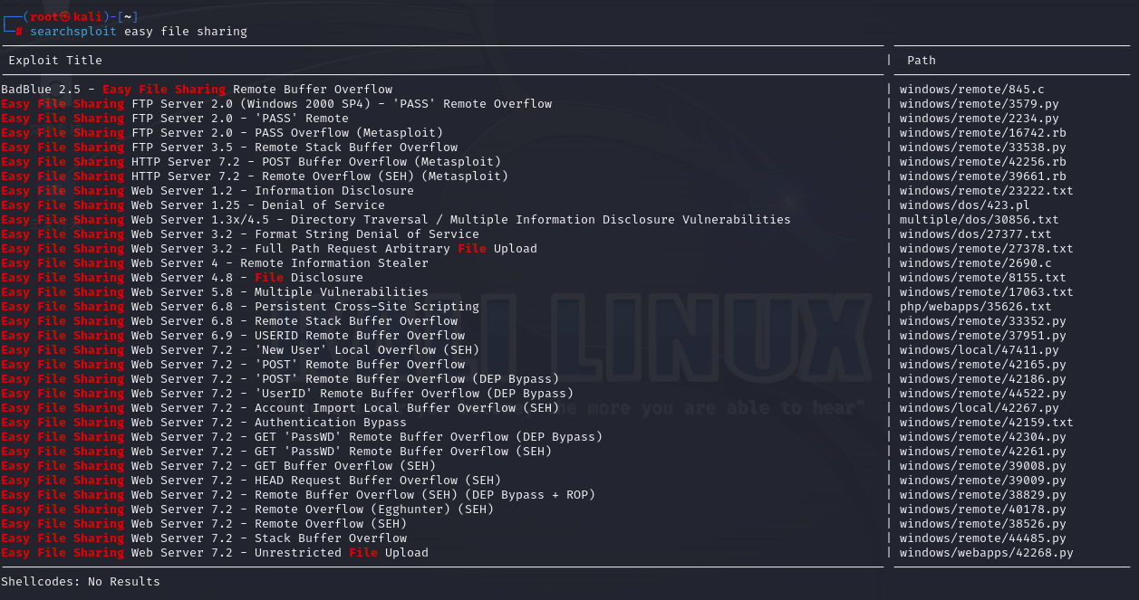 用searchsploit easy file sharing扫描对应服务存在的漏洞