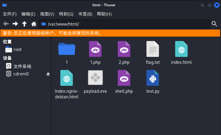 在文件系统中输入/var/www/html,可找到Apache默认的网站目录,使用root权限才能新建文件夹