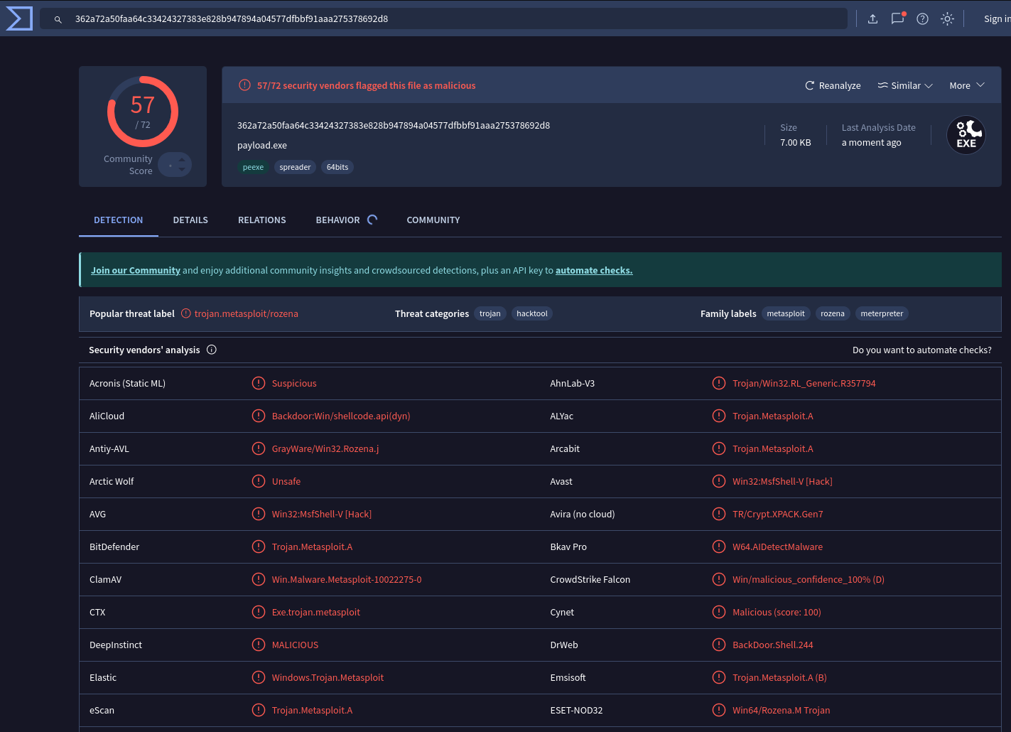 www.virustotal.com中的检测结果如下