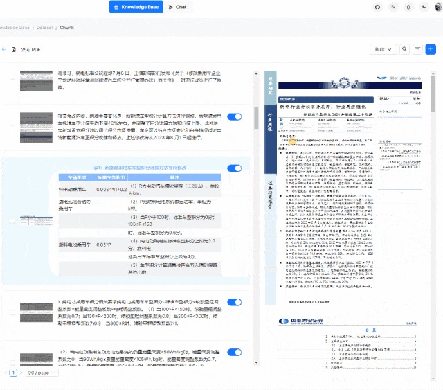 此外,RAGFlow 强调文档处理的可视化和可解释性,允许用户查看文档解析结果并定位到原文,提高答案的准确性和可追溯性。RAGFlow 也通过提供原文引用链接和详细的处理结果展示,帮助用户高效管理和利用文档数据,显著减少生成信息不准确的风险,满足各行业的文档管理需求。