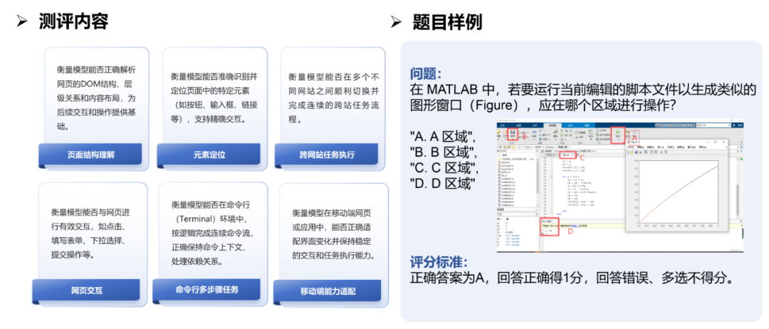 环境感知从结构理解、元素定位等维度对执行智能体任务的大模型进行测试,考察其结合语义理解环境、有效交互的能力。