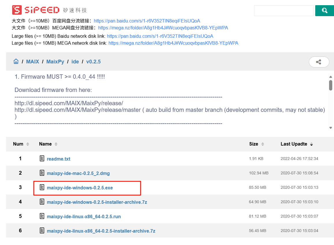 - 选择带有 maixpy_v...bin 字样的文件下载即可