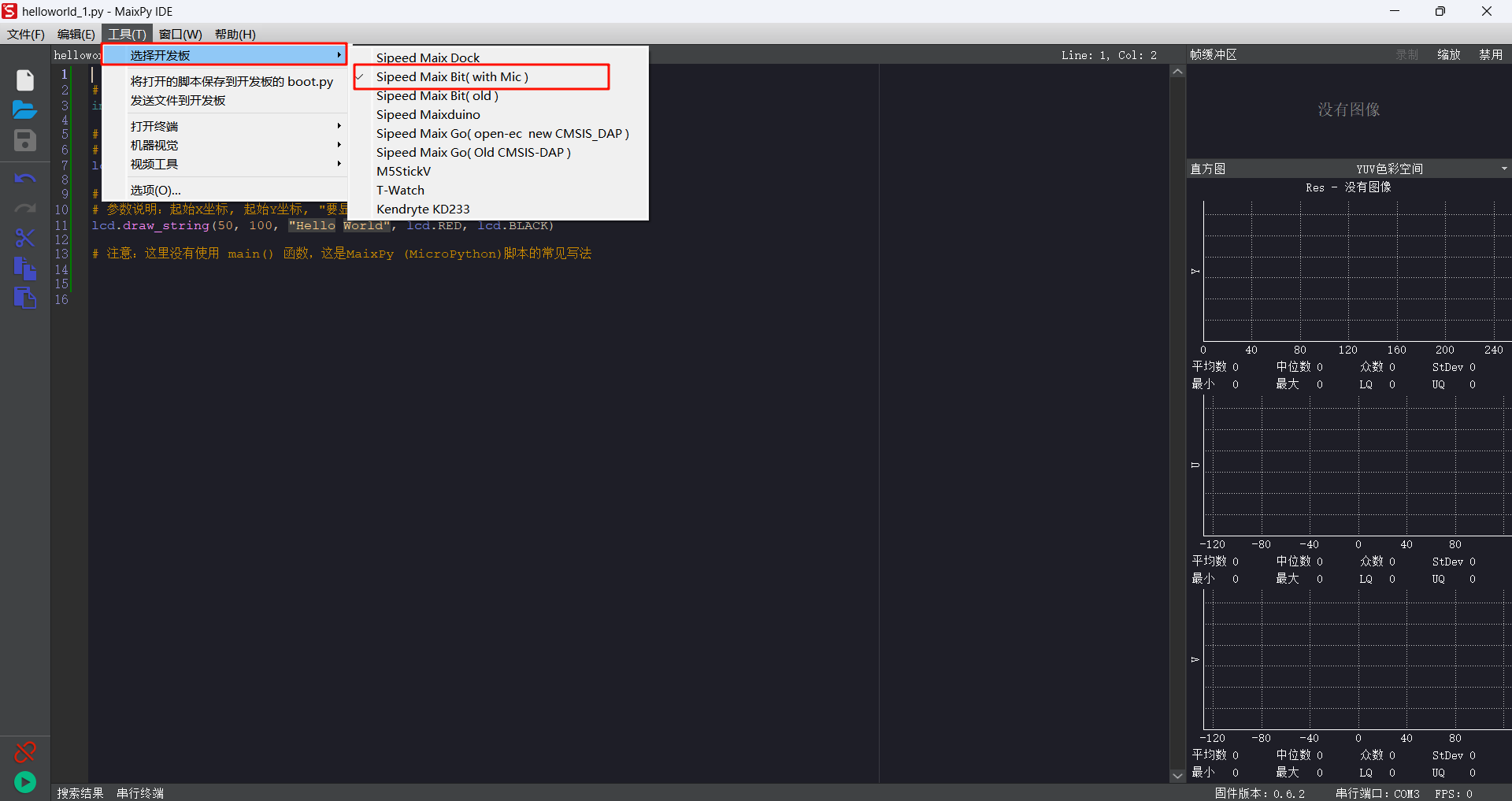 - 选择开发板型号(一般选 Maix Bit/Dock);
