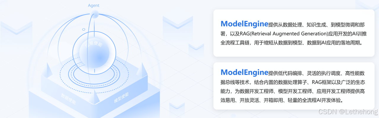 ModelEngine是华为DCS(Data Center Stack)全栈中的AI训推全流程工具链,它被设计为一站式AI开发平台,覆盖了从数据处理、知识生成、模型微调部署,到RAG应用开发上线的全流程。对于开发者而言,它的目标非常明确:大幅降低AI应用开发门槛,缩短开发周期。