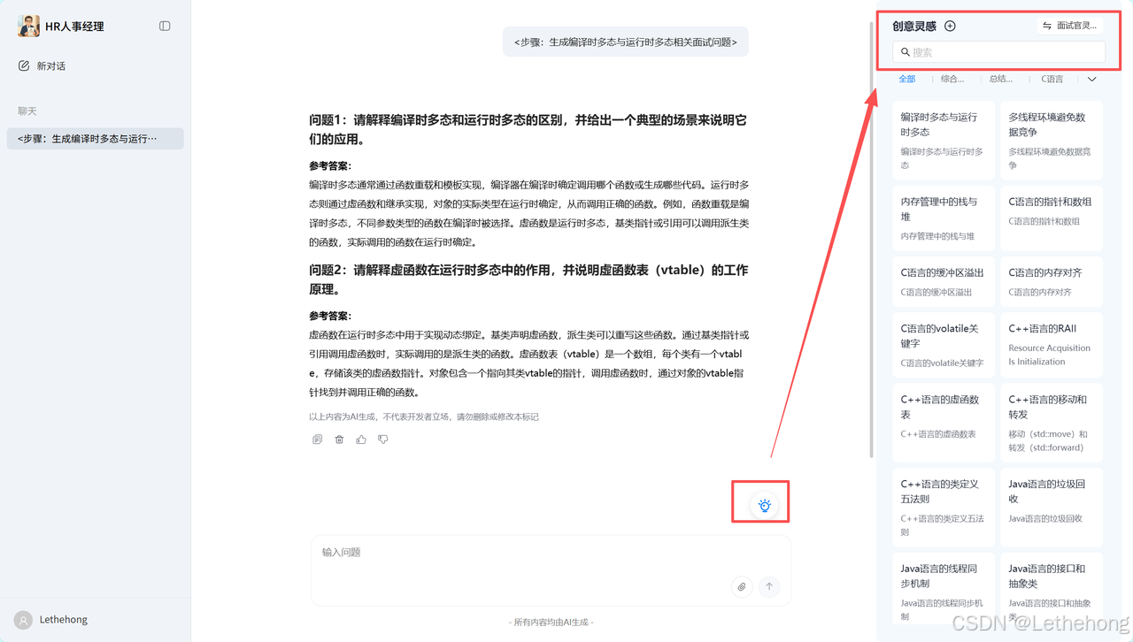 最后展示一下对话页面的情况,如果不知道怎么开口询问,点击那个小灯泡即可,打开创意灵感。