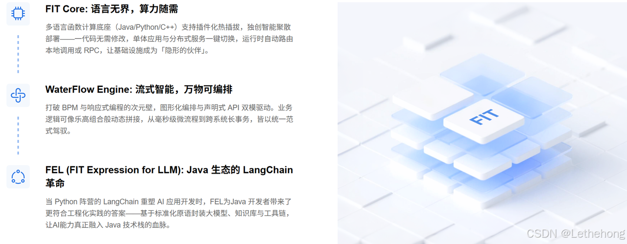 Java 企业级 AI 开发框架,提供多语言函数引擎(FIT)、流式编排引擎(WaterFlow)及 Java 生态的 LangChain 替代方案(FEL)。原生/Spring 双模运行,支持插件热插拔与智能聚散部署,无缝统一大模型与业务系统。