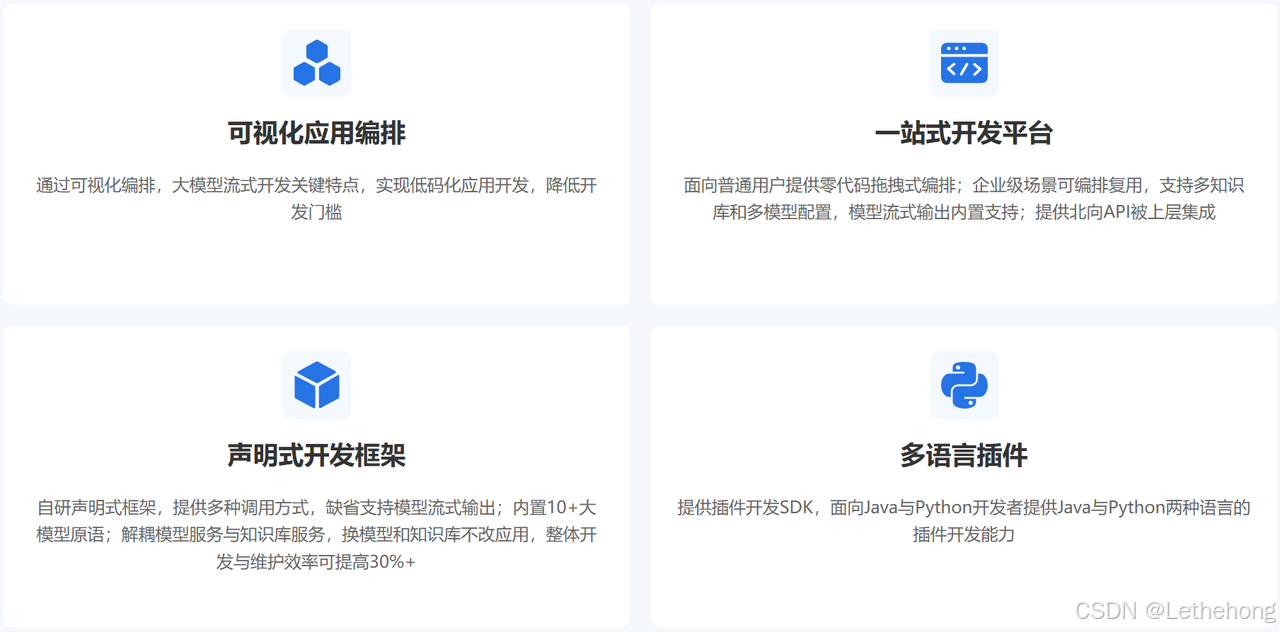 集成与开发效率:支持LangChain、LlamaIndex等主流插件,保护开发者已有投资,并能通过低代码方式快速构建高准确率的AI应用。