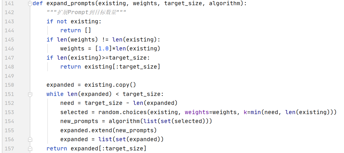 计算当前提示词与目标提示词数量的差值,先通过加权抽样选择权重高的提示词,然后再调用突变算法,去重并合并,得到目标数量的提示词。