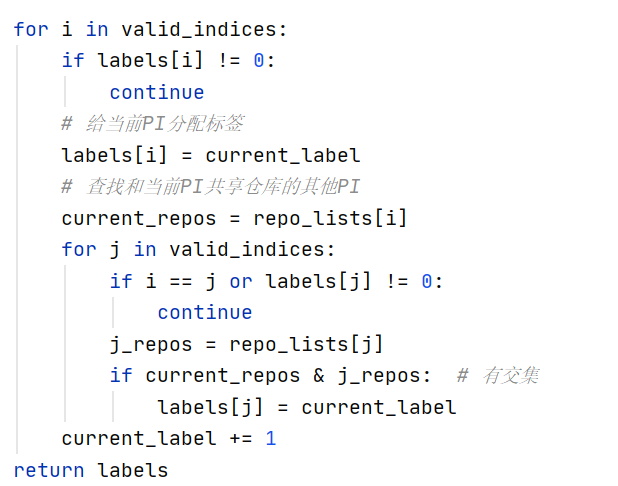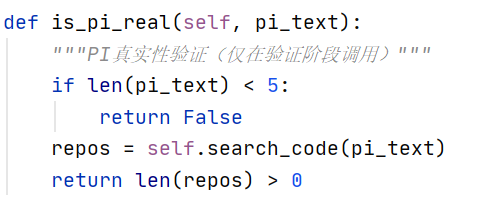 通过上述的步骤生成的PI,需要在提取过后,通过调用GitHub进行检验是否是真实PI(是否有关联的库),并且通过组内PI若有同一GitHub仓库响应,则这个组内的PI很大概率是有关联性的(即是有很高价值的)