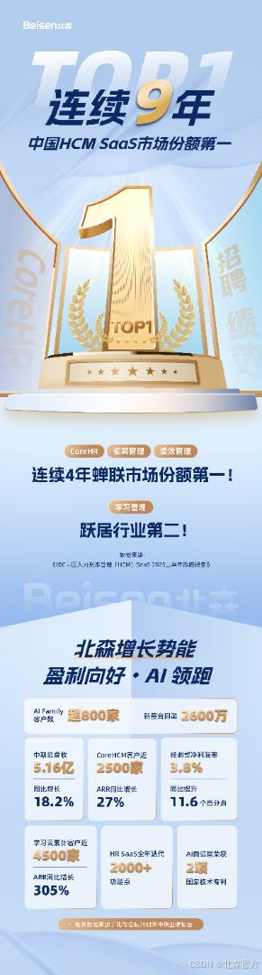 IDC:北森连续9年蝉联HCM SaaS市场份额第一,AI Family商业化领先