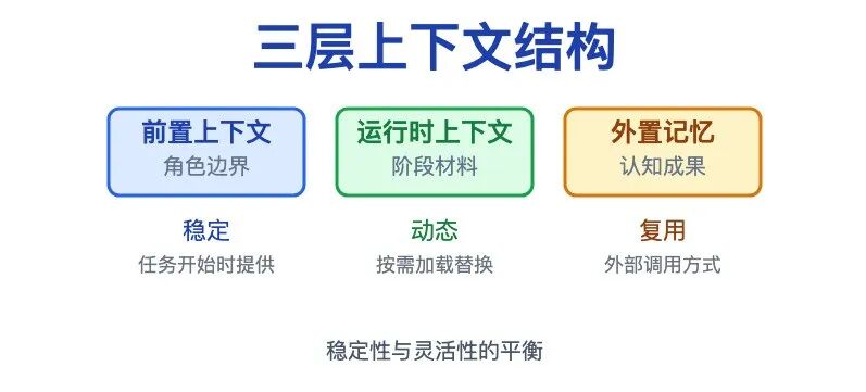 因此,它们通常以文件、技能或结构化记录的方式存在,通过"调用"而非"常驻"的方式进入上下文,从而在稳定性与灵活性之间取得平衡。