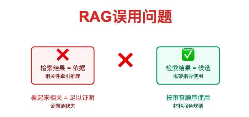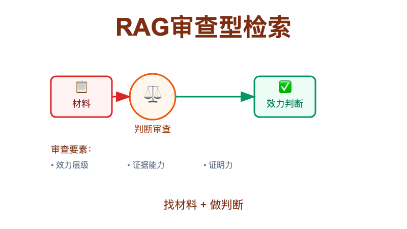 审查型检索里需要把接口写清楚:先看什么、怎么过滤、怎么引用出处、什么情况下必须提示材料缺口。RAG 把材料送进来,推理按框架使用材料,材料才不会反过来牵引规则。