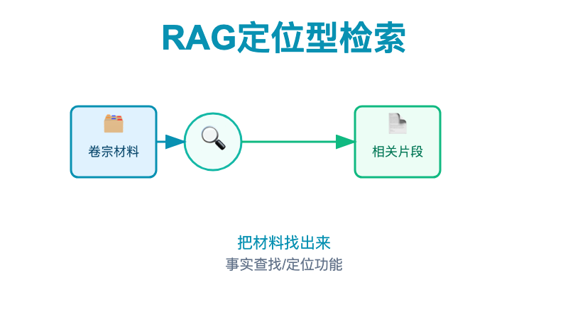 定位型检索解决"把材料找出来"。RAG 把相关片段召回出来,做必要的排序或重排,把结果交给模型阅读即可。