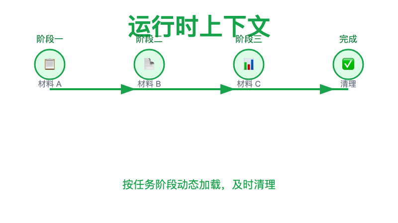 体量大、与步骤强相关的内容由模型在运行时按需检索。